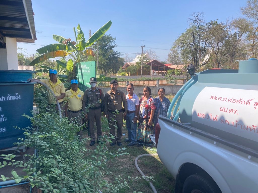 พ.ต.อ.ขจรศักดิ์ สมหวัง ผกก.สภ.บ้านทัพไทย พร้อมข้าราชการตำรวจชุดจิตอาสา และ กต.ตร.สภ.บ้านทัพไทย ร่วมกันนำน้ำสะอาดจากบ่อน้ำ UN บ้านทับทิมสยาม 03 มอบให้ รพ.สต.ทัพไทย ใช้อุปโภค บริโภค และบรรเทาปัญหาขาดแคลนน้ำ